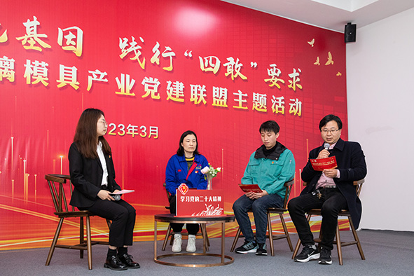 在沙家浜玻璃模具產(chǎn)業(yè)黨建聯(lián)盟活動(dòng)上企業(yè)黨員代表陳燕結(jié)合工作實(shí)際分享黨的二十大精神學(xué)習(xí)心得,她表示作為傳統(tǒng)產(chǎn)業(yè)的玻璃模具,在傳承工匠精神的同時(shí),也揚(yáng)起了轉(zhuǎn)型升級(jí)的風(fēng)帆。作為一名玻璃模具編程人員,我將深入學(xué)習(xí)貫徹黨的二十大精神,扎根玻璃模具行業(yè)發(fā)光發(fā)熱,為建設(shè)“春來模樣”盡一份新力量。